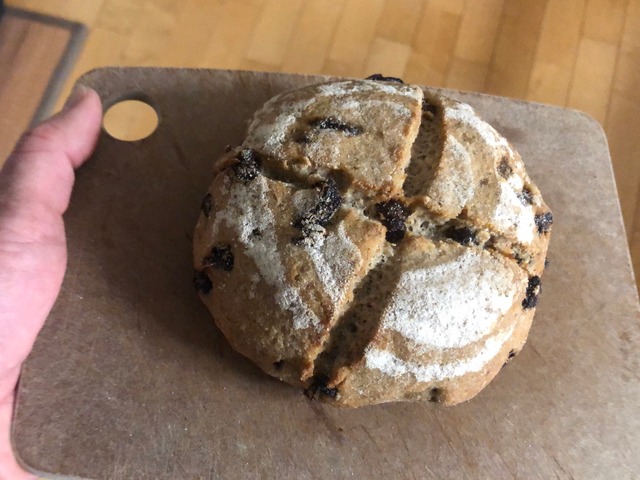 有機栽培のレーズンと有機栽培の胡桃がたっぷりと入ったどっしりとしたカンパーニュです。